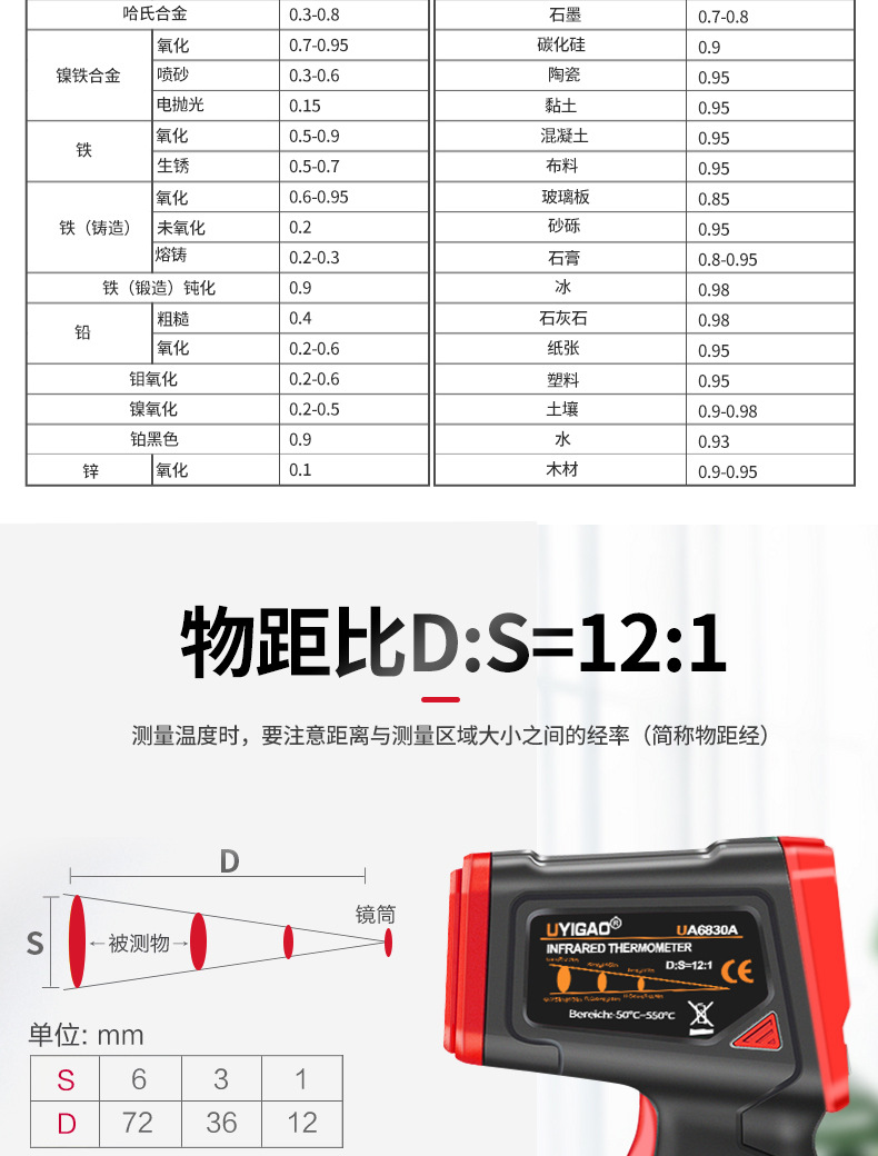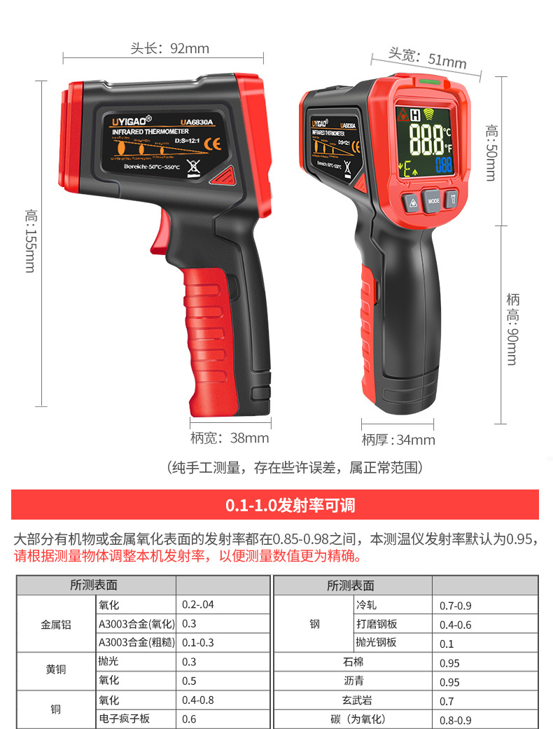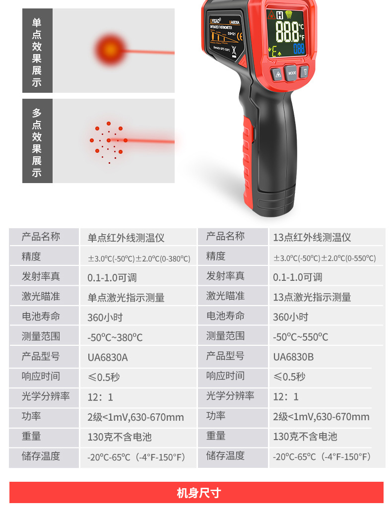紅外測溫儀工業(yè)高精度紅外線溫度計電子測油溫手持測溫槍水溫UA6830A